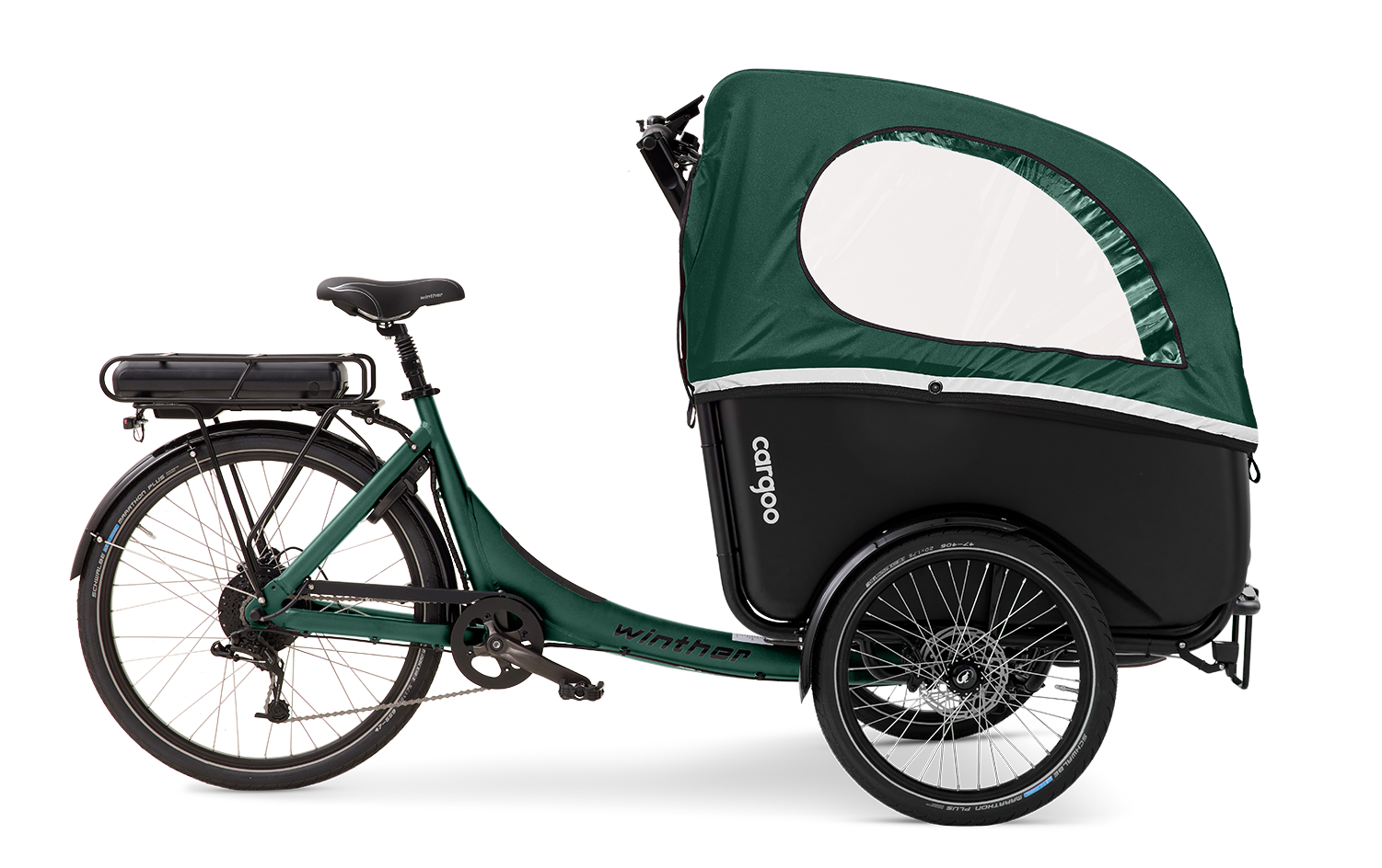 Cargoo er vores mest rummelige ladcykel. Den har en 278 L kabine, hvilket svarer til bagagerummet i en lille til mellemstor bil, og kan laste op til 100 kg. Den kan rumme op til fire børn i den stålrørsforstærkede kabine. Vælg mellem 9 forskellige sædeløsninger. Hvis du har små børn, gør ISO-fix konsollen livet lettere, når du skifter mellem forskellige transportformer. Flyt blot ISO-FIX-autostolen fra din bil til din Cargoo - og tilbage igen. Skal du have din partner med? Så vælg vores Familiebænk, som giver mulighed for, at både børn og voksne kan dele bænken. Mulighederne er mange, så du kan designe den efter dine behov.