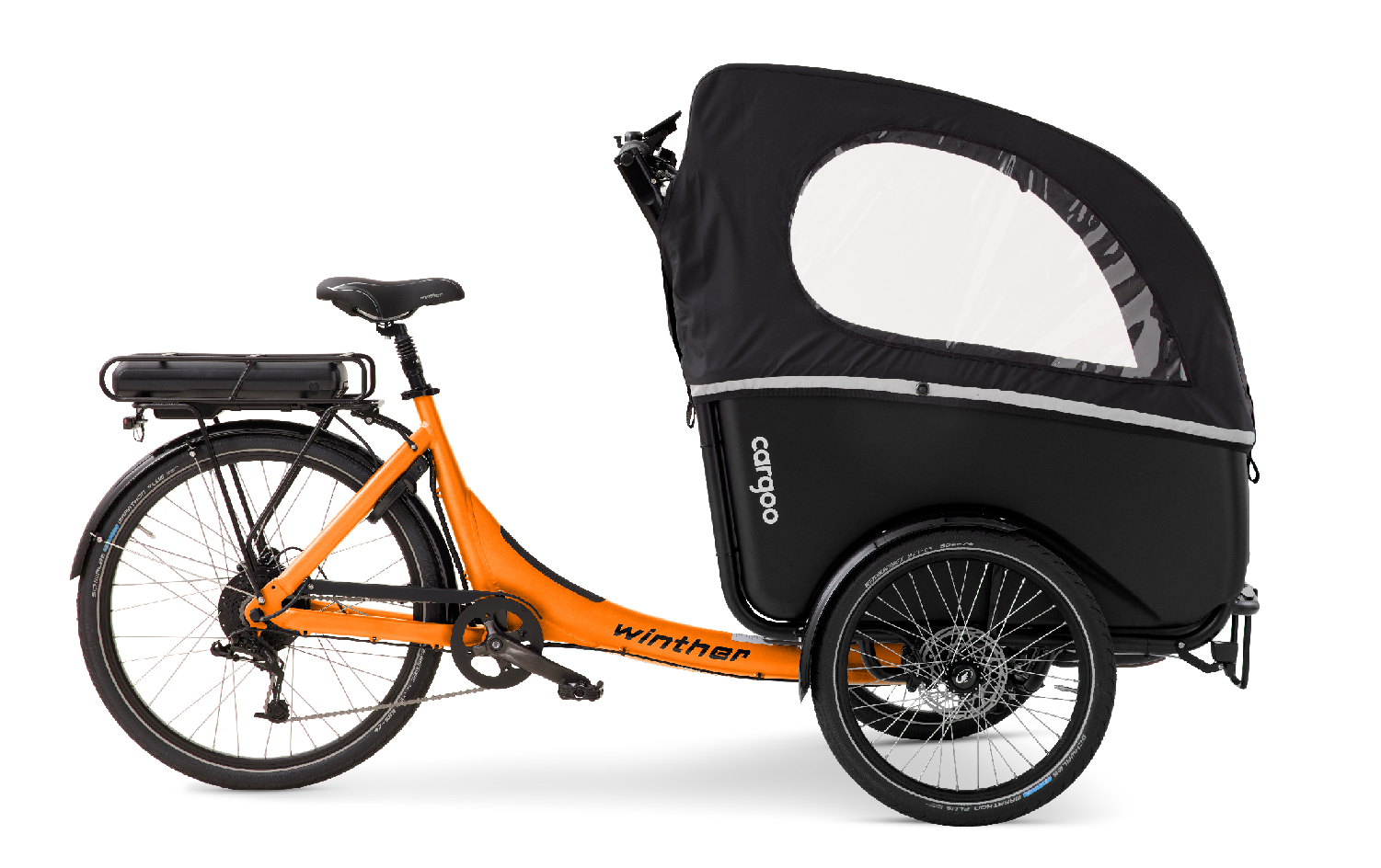 Winther Lastenräder sind serienmäßig mit Reflektoren vorne und hinten ausgestattet. Auch das Verdeck der Kabine verfügt über einen Reflektorstreifen. In Kombination mit Reflektoren an Reifen und Pedalen wirst du im Dunkeln immer gut gesehen.