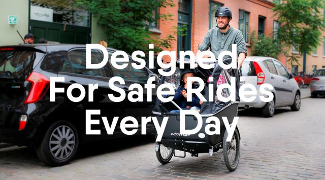 Winther cargo bikes are equipped with reflectors on the front and back as standard. The Cabin Hood also features a strip of reflector. Combined with reflectors on the tires and pedals, you will always be seen when riding in the dark.